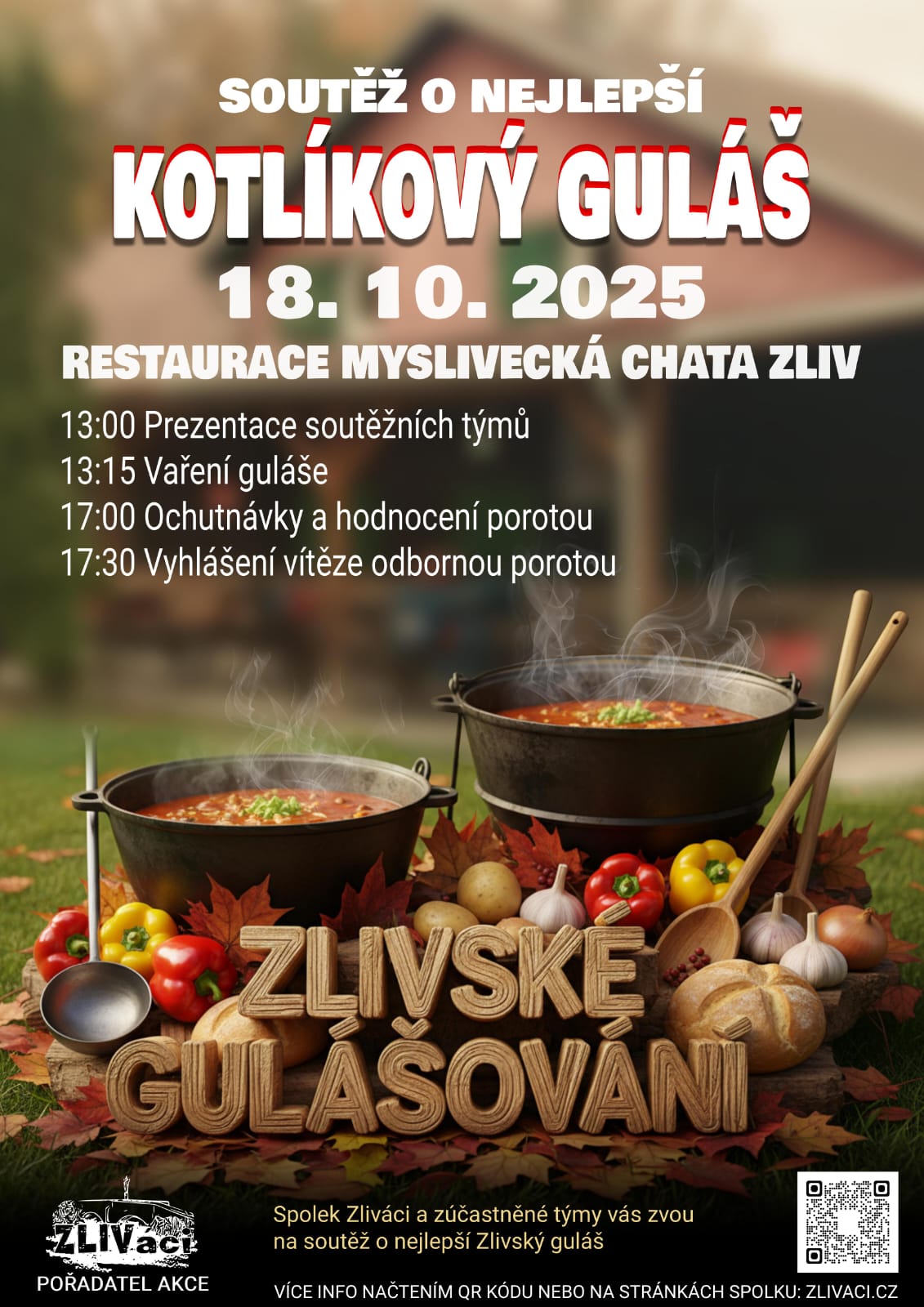 dovolte, abychom Vám jménem spolku ZLIVÁCI vyjádřili obrovské poděkování za neopakovatelnou atmosféru, kterou jste vytvořili na akci ZLIVSKÉ GULÁŠOVÁNÍ 2025!